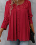 SPECYFIKACJA: Rodzaj Bluzki: Bluzka Styl: Elegancki Materiał: Bawełna z domieszką, Koronka Okazja: Na co dzień, Praca Dekolt: Okrągły dekolt Wzór: Jednolity Kolor Typ rękawa: Rękaw standardowy Długość rękawa: Długi rękaw Typ sylwetki: Regularny Pora roku: Wiosna, Jesień, Zima Detale: Guziki, Marszczona, Koronka Paczka zawiera: 1 x Bluzka ...