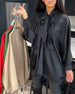 SPECYFIKACJA: Rodzaj Bluzki: Bluzki Styl: Elegancki, Biznesowy Materiał: Bawełna z domieszką Okazja: Na co dzień, Praca Dekolt: Kołnierzyk wiązany Wzór: Jednolity Kolor Typ rękawa: Rękaw standardowy Długość rękawa: Długi rękaw Typ sylwetki: Regularny Pora roku: Wiosna, Jesień, Zima Detale: Sznurowane Paczka zawiera: 1 x Bluzka TABELA ROZMI...