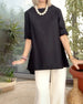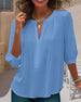 Bluzka w jednolitym kolorze z rękawami 3/4 i wycięcięm w środku