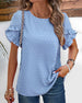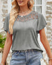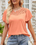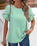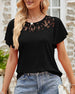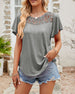 Bluzka z krótkim rękawem wykonana z siateczkowej koronki w jednolitym kolorze