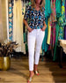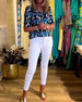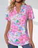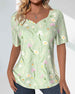 Bluzka z krótkim rękawkiem w kwiaty i guziki