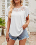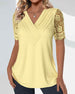 SPECYFIKACJA: Rodzaj Bluzki: Bluzka Styl: Elegancki Materiał: Bawełna z domieszką, Koronka Okazja: Na co dzień Dekolt: W serek Wzór: Jednolity Kolor Typ rękawa: Rękaw standardowy Długość rękawa: Krótki rękaw Typ sylwetki: Regularny Pora roku: Wiosna, Lato, Jesień Detale: Patchwork Paczka zawiera: 1 x Bluzka TABELA ROZMIARÓW (cm) ...