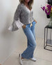 Top z bąbelkowym rękawem w jednolitym kolorze