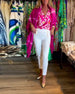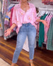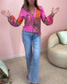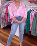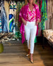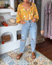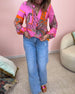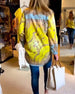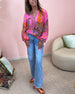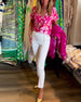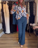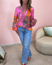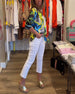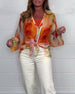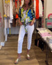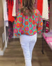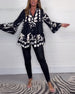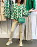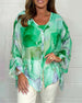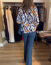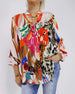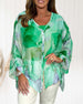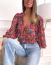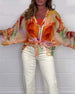 Bluzka z nadrukiem zapinana na guziki z rękawami dzwonkowymi