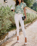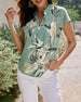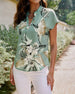 SPECYFIKACJA: Rodzaj Bluzki: Koszula Styl: Nieformalny Materiał: Bawełna z domieszką Okazja: Na co dzień, Wakacje Dekolt: W serek Wzór: Wzór w liście Typ rękawa: Rękaw standardowy Długość rękawa: Krótki rękaw Typ sylwetki: Regularny Pora roku: Wiosna, Lato Detale: Guziki Paczka zawiera: 1 x Koszula TABELA ROZMIARÓW (cm) Rozmiar Biust Dług...