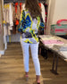 Bluzka z dekoltem w szpic z kolorowymi nadrukami