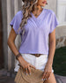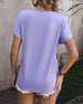 SPECYFIKACJA: Rodzaj Bluzki: Koszulka Styl: Szykowny, Elegancki Materiał: 100% Poliester Okazja: Na co dzień, Wakacje Dekolt: W serek Wzór: Jednolity Kolor Typ rękawa: Rękaw standardowy Długość rękawa: Krótki rękaw Typ sylwetki: Luźny krój Pora roku: Wiosna, Lato Detale: Koronka Paczka zawiera: 1 x Koszulka TABELA ROZMIARÓW (cm) ...