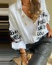 Bluzka z długim rękawem i dekoltem w kształcie litery V z nadrukiem w stylu casual