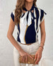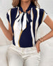 SPECYFIKACJA: Rodzaj Bluzki: Bluzki Styl: Nieformalny, Biznesowy Materiał: 5% Spandex, 95% Poliester Okazja: Na co dzień, Praca Dekolt: Kołnierzyk wiązany Wzór: Wielokolorowa Typ rękawa: Rękaw nietoperz Długość rękawa: Krótki rękaw Typ sylwetki: Regularny Pora roku: Wiosna, Lato, Jesień Detale: Sznurowane Paczka zawiera: 1 x Bluzka TABELA...
