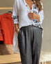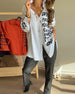 SPECYFIKACJA: Rodzaj Bluzki: Koszula Styl: Nieformalny Materiał: 5% Spandex, 95% Poliester Okazja: Na co dzień Dekolt: Dekolt Kopertowy Wzór: List Typ rękawa: Opuszczone ramię Długość rękawa: Długi rękaw Typ sylwetki: Luźny krój Pora roku: Wiosna, Lato, Jesień Detale: Guziki Paczka zawiera: 1 x Koszula TABELA ROZMIARÓW (cm) Roz...