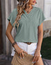 Jednokolorowy top z okrągłym dekoltem i falbankami na rękawach