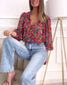 Bluzka z kwiatowym nadrukiem i dekoltem w kształcie litery V