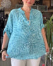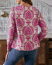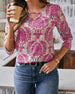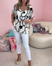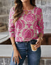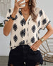 Bluzka z nadrukiem i dekoltem w kształcie litery V zapinana na guziki z rękawami trzy czwarte