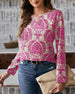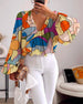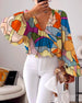 Bluzka z kolorowym nadrukiem dekoltem w kształcie litery V rękawami typu lampion