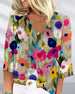 Bluzka na co dzień w kolorowe kwiaty z dekoltem w kształcie litery V i rękawem 3/4