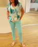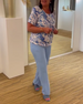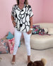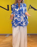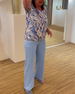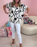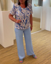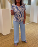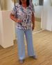 Luźna bluzka z krótkim rękawem i nadrukiem kwiatowym