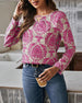 Bluzka z długim rękawem i dekoltem w kształcie litery V w kwiatowy wzór