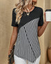 SPECYFIKACJA: Rodzaj Bluzki: Bluzki Styl: Nieformalny Materiał: 3% Spandex, 97% Poliester Okazja: Na co dzień Dekolt: Dekolt Kopertowy Wzór: W paski, Nadruk z postacią Typ rękawa: Rękaw standardowy Długość rękawa: Rękaw 1/2 Typ sylwetki: Regularny Pora roku: Wiosna, Lato Detale: Guziki, Rozcięcie Paczka zawiera: 1 x Bluzka TABELA ROZMIARÓW...