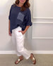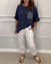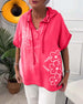 Bluzka z okrągłym dekoltem i kieszeniami z cekinami