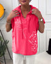 Bluzka na co dzień z dekoltem w kształcie litery V wykończona falbaną w jednolitym kolorze