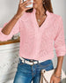 Koronkowa bluzka w jednolitym kolorze z dekoltem w kształcie litery V