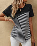 SPECYFIKACJA: Rodzaj Bluzki: Bluzki Styl: Elegancki, Biznesowy Materiał: Bawełna z domieszką Okazja: Na co dzień, Praca Dekolt: W serek Wzór: Nadruk/Wzór Typ rękawa: Rękaw standardowy Długość rękawa: Krótki rękaw Typ sylwetki: Regularny Pora roku: Wiosna, Lato, Jesień Detale: Patchwork Paczka zawiera: 1 x Bluzka TABELA ROZMIARÓW (cm) Ro...