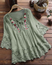 SPECYFIKACJA: Rodzaj Bluzki: Bluzki Styl: Nieformalny Materiał: Bawełna z domieszką, Koronka Okazja: Na co dzień Dekolt: Okrągły dekolt Wzór: Kwiatowy, Jednolity Kolor Typ rękawa: Rękaw standardowy Długość rękawa: Rękaw 3/4 Typ sylwetki: Regularny Pora roku: Lato Detale: Sznurowane, Wydrążone, Koronka Paczka zawiera: 1 x Bluzka TABELA ROZM...