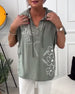 SPECYFIKACJA: Rodzaj Bluzki: Bluzki Styl: Nieformalny Materiał: Bawełna z domieszką Okazja: Na co dzień Dekolt: Okrągły dekolt Wzór: Nadruk/Wzór Typ rękawa: Rękaw standardowy Długość rękawa: 7/8 Typ sylwetki: Regularny Pora roku: Wiosna, Lato Detale: Wydrążone Paczka zawiera: 1 x Bluzka TABELA ROZMIARÓW (cm) Rozmiar Biust Długość S 95...