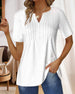 SPECYFIKACJA: Rodzaj Bluzki: Bluzka Styl: Elegancki, Biznesowy Materiał: Bawełna z domieszką Okazja: Na co dzień, Praca Dekolt: W serek Wzór: Jednolity Kolor Typ rękawa: Rękaw standardowy Długość rękawa: Krótki rękaw Typ sylwetki: Regularny Pora roku: Wiosna, Lato, Jesień Detale: Guziki, Marszczona Paczka zawiera: 1 x Bluzka TABELA ROZMIAR...