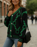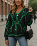 Modny Kardigan Z Długim Rękawem W Kontrastowym Kolorze