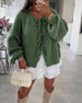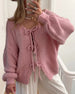 Kardigan ze sznurowaniem w jednolitym kolorze, leniwy styl