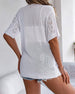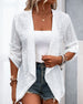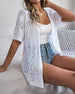 SPECYFIKACJA: Kategoria: Kardigany Styl: Elegancki Materiał: Wiskoza Wzór: jednokolorowy Typ rękawa: Rękaw standardowy Długość rękawa: Krótki rękaw Detale: Prążkowane, Wydrążone Typ sylwetki: Luźny krój Okazja: Na co dzień Pora roku: Wiosna, Lato, Jesień Paczka zawiera: 1 x Kardigan TABELA ROZMIARÓW (cm) Rozmiar Biust Długość Rękawy ...