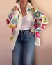 SPECYFIKACJA: Kategoria: Kardigany Styl: Nieformalny Materiał: Bawełna z domieszką Wzór: Wielokolorowa Typ rękawa: Rękaw standardowy Długość rękawa: Długi rękaw Typ sylwetki: Luźny krój Okazja: Na co dzień Pora roku: Wiosna, Jesień, Zima Paczka zawiera: 1 x Kardigan TABELA ROZMIARÓW (cm) Rozmiar Biust Długość S 102 68 M 107 69....