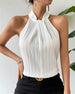 Zestaw Bezramiączkowy Marszczony Top w Jednolitym Kolorze