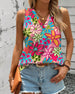 Top Na Ramiączkach Z Dekoltem W Serek Bez Rękawów Drukowany Kolorblok