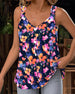 Tanktop z Gardłem wkształcie U i Motywem Kwiatowym
