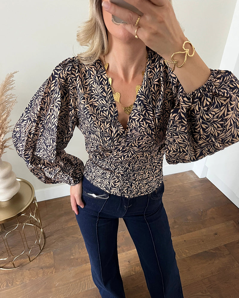 Modny Top Z Bufiastymi Rękawami I Leopardzim Nadrukiem
