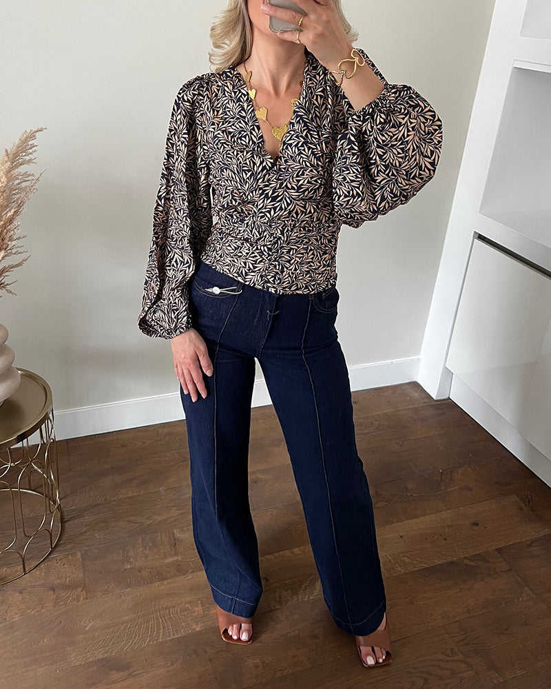 Bluzka Modna Drukowany Klapki