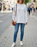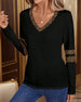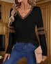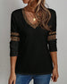 Koszulka swobodna, koronkowa, z dekoltem w serek i długim rękawem