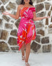 Sukienka Gorąco Kryształ Asymetryczny Dekolt Odsłonięte Ramiona Długi Rękaw