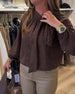 Bluzka Z Detalem wstążki, Projektem Rękawów Pufowanych, Tkaniną Prześwitującą Blaskiem I Elegancją Wibracji