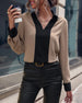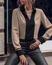 Uniwersalna Bluza Color-Block Z Kołnierzem Na Guziki
