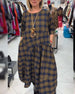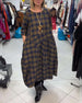 Drukowana Sukienka W Kratkę Z Okrągłym Dekoltem