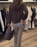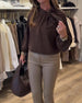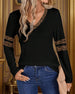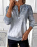 Elegancka koszulka z nadrukiem w panterkę, koronka, długi rękaw