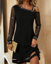 SPECYFIKACJE: Styl: Elegancki Materiał: Bawełna z domieszką,Siatka Rodzaj Sukienki: Trapezowa Długość Sukienki: Nad kolanem Dekolt: Okrągły dekolt Wzór: Jednolity Kolor Rodzaj rękawa: Rękaw standardowy Długość rękawa: Długi rękaw Detale: Patchwork Typ sylwetki: Regularny Pora roku: Jesień,Zima Okazja: Na co dzień Paczka zawiera: 1 x Sukienka T...