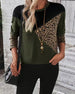 Top Animal Print Okrągły Dekolt Długi Rękaw