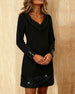Sukienka Dekolt V Długi Rękaw Jednorzędowa