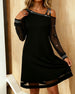 SPECYFIKACJE: Styl: Elegancki Materiał: Bawełna z domieszką Rodzaj Sukienki: Trapezowa Długość Sukienki: Do kolan Dekolt: Cold Shoulder Wzór: Jednolity Kolor Rodzaj rękawa: Rękaw standardowy Długość rękawa: Długi rękaw Detale: Patchwork,Dżety Typ sylwetki: Regularny Pora roku: Jesień,Zima Okazja: Na co dzień,Impreza Paczka zawiera: 1 x Sukienk...