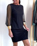 Sukienka Błyszczący Patchwork Okrągły Dekolt