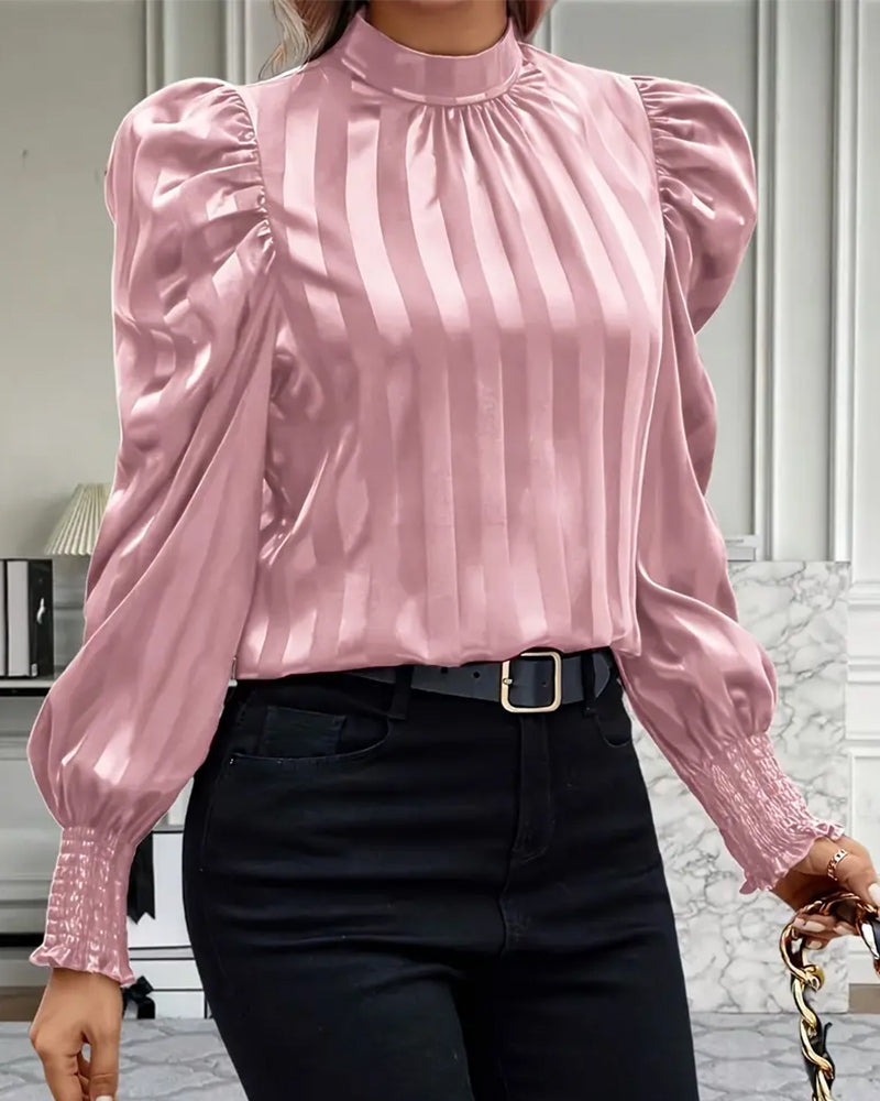 SPECYFIKACJE: Rodzaj Bluzki: Bluzki Styl: Elegancki Materiał: Bawełna z domieszką Okazja: Na co dzień Wzór: Jednolity Kolor Sleeve Type: Bufiasty rękaw Długość rękawa: Długi rękaw Typ sylwetki: Regularny Pora roku: Wiosna,Jesień Detale: Perła Paczka zawiera: 1 x Bluzka TABELA ROZMIARÓW (cm) Rozmiar Biust Długość S 92 65 M 96 66.5 L 100...